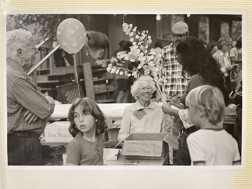 We are not (yet) sure exactly where or when this photo was taken, but we can get pretty close. The photo must be from between 1975 and 1978, as we know that Hidden Villa Tales was published in 1973 and Hidden Villa Animal Tales in 1975 (both are listed for sale at $2.50 and $3 respectively on the box in front of Josephine!) and Josephine passed away in 1978. As for where on Hidden Villa, we are also not (yet) 100% sure, but we think the photo might be taken somewhere around the location of the 2nd Hostel based on the building and greenery around it. If anybody has a better idea or would like to join us in better preserving, expanding, and sharing Hidden Villa’s history for its next 100 years, we would love to hear from you at [email protected].